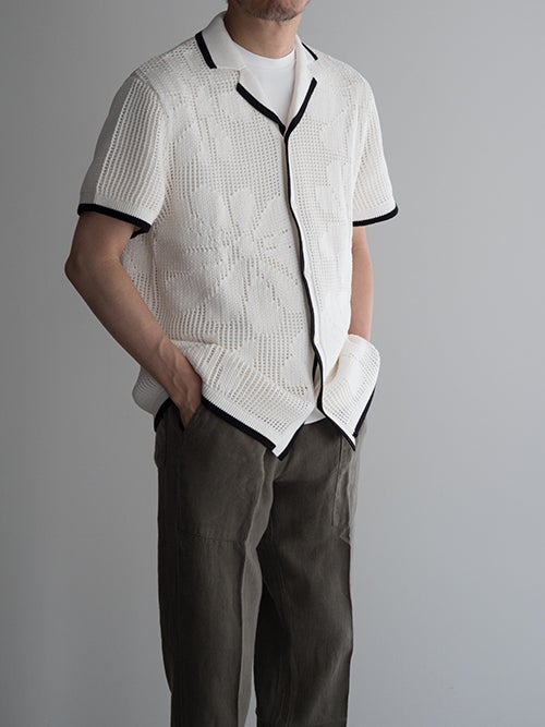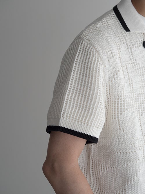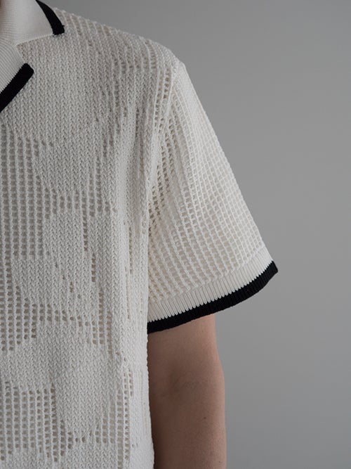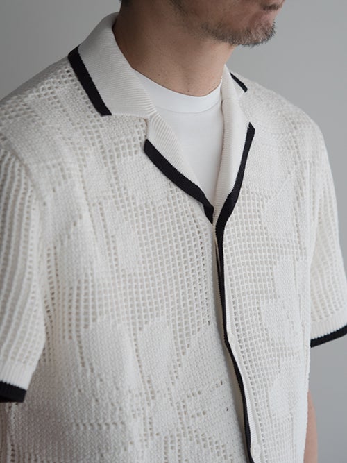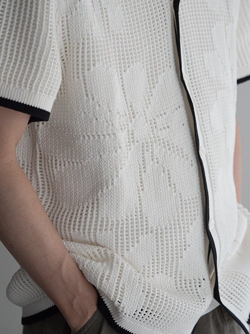 メゾンラビッシュ メッシュ編みニットシャツ WHITE