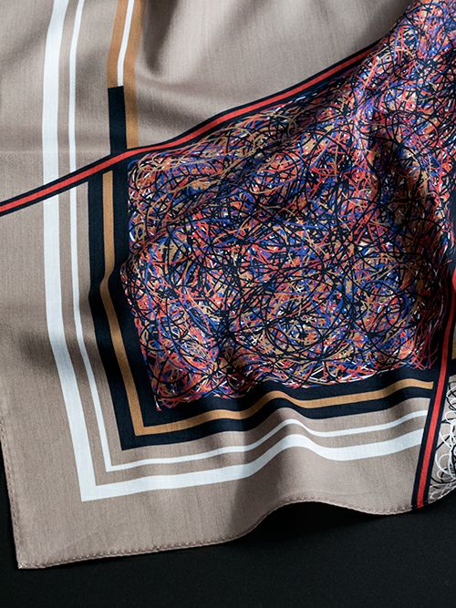 ファッションアイテムとして絶妙なサイズ感で、ハンカチとしての使用は勿論、ポケットチーフやネッカチーフとしてもご使用頂けます。女性ですとバッグに結んでも様になります。