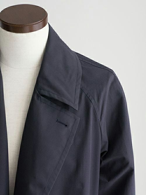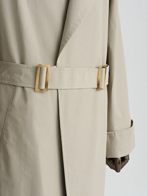 同じベルテッドコートとして括られる所謂ラップコートと違い、バックルがある分ベルトに安定感があり、ジャケットやスーツの上での着用が様になるのも魅力。