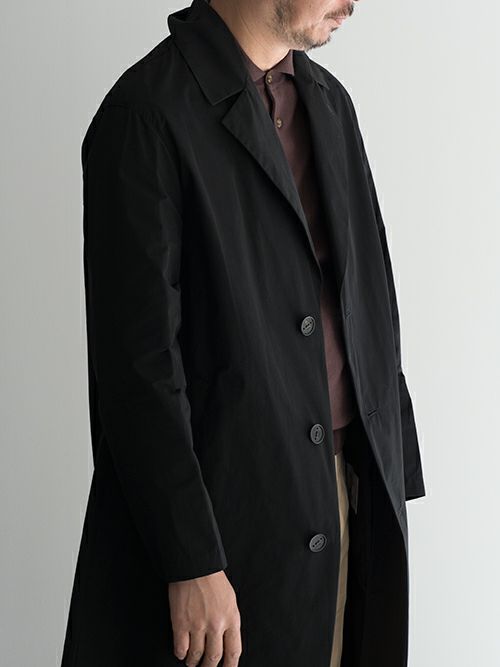 ポリエステル、コットン混生地を使用したHevo(イーヴォ)のステンカラーコート。