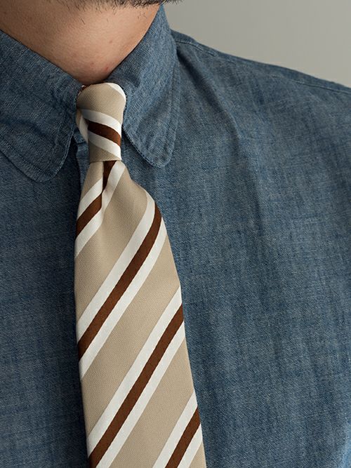 少しカジュアルダウンしたジャケットスタイルに最適で、ネクタイはコットンやウールだけでなく、艶が強すぎる物でなければシルクタイも合わせていただけます。