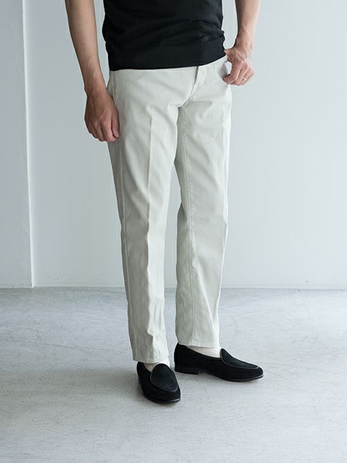 腰回りにゆとりを持たせた自然なテーパードラインで、イタリアのパンツには珍しいタイト過ぎないシルエットが魅力。