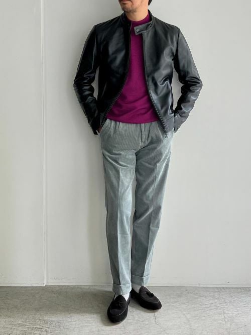 モデルは定番JURIのNAPPA MAGLIA。袖を含め、脇から背面がニット素材になっており、軽さとデザイン性を兼ね備えた一着。ボリュームが抑えられている事で、コートなどのインナー使いも可能な汎用性の高さも魅力です。