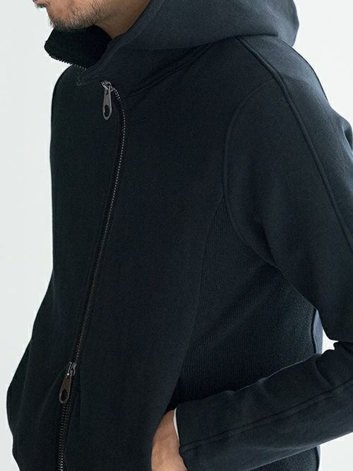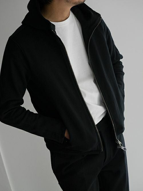 特殊な工程で縫製しており、着心地とシルエットに拘ったスウェットパーカー。綿裏毛にストレッチ糸を入れ込んで編んでおり、伸縮性に富んだストレスフリーな着用感です。