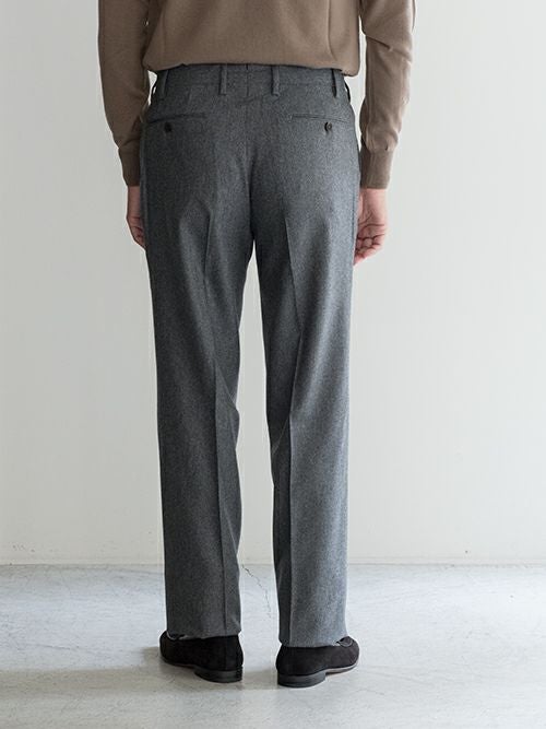 ワンプリーツで膝下から緩やかにテーパードさせた、イタリアブランドらしいクラシックなシルエットのスラックス。シャツをインした際の腰回りもスマートに見え、ジャケットスタイルにお薦めの一着です。