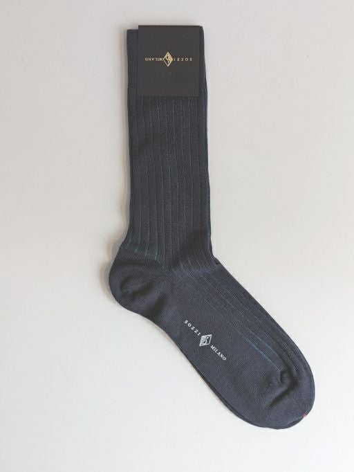 こちらは上質なウール混生地を使用したリブソックス。スーツスタイルからカジュアルな装いまで、上品な足元を演出してくれます。