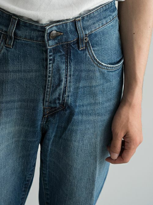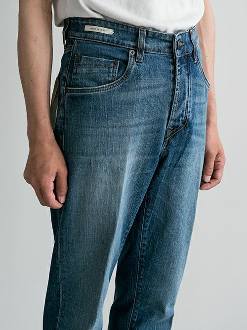 腰回りにゆとりを持たせた自然なテーパードラインで、イタリアのデニムには珍しいタイト過ぎないシルエットが新鮮なデニムです。
