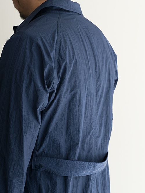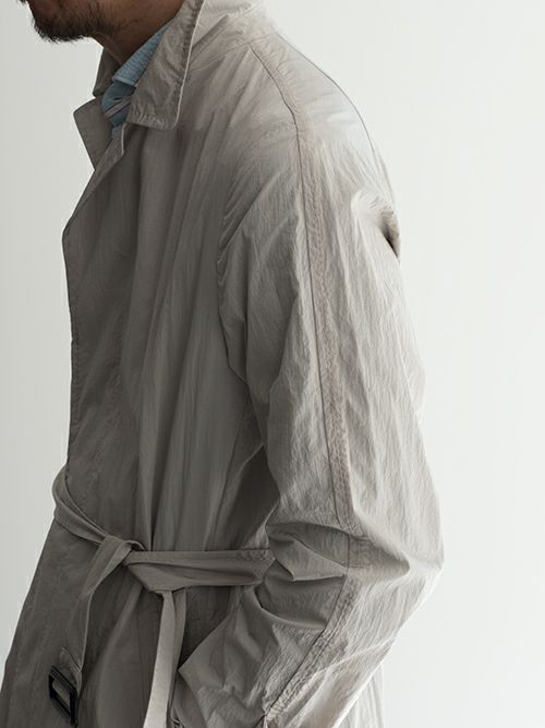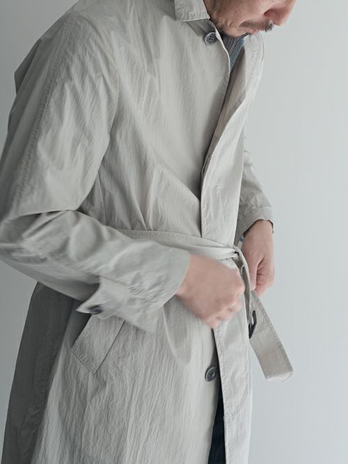 比翼仕立てにする事で、フロント釦を閉じた際のクラシックな雰囲気が印象的なステンカラーコート。