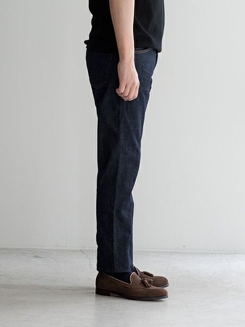 カジュアルだけでなく、ジャケットスタイルとも相性の良い一着です。ワンウォッシュ仕上げですので、穿き込みむ事で経年の変化をお楽しみいただけます。フロントはジップフライ仕様。