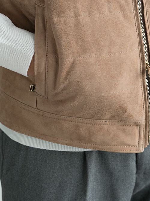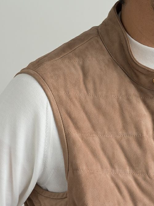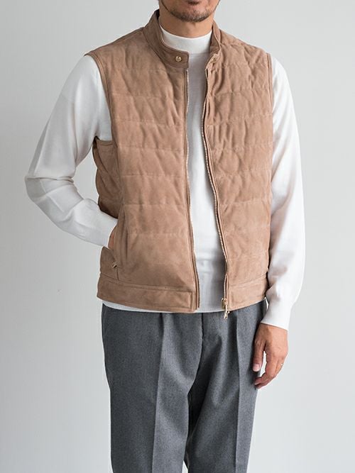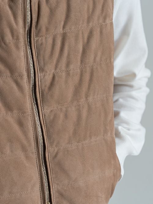 EMMETIの代名詞とも言えるモデル「JURI(ユリ)」。そのJURIをベースとしたゴートスエードのダウンベストです。
