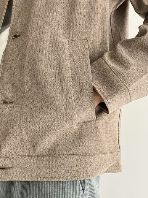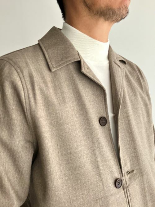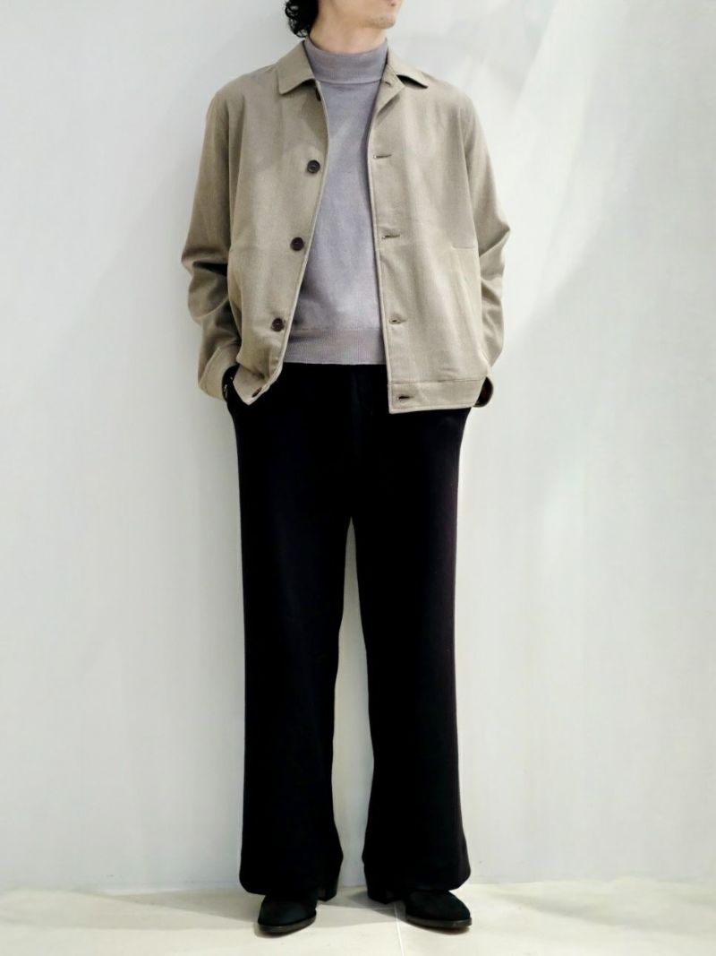 落ち着いたカラーリングが魅力的で、秋口の軽い羽織としては勿論、タートルニットとコーディネートした冬らしいスタイルまで叶います。オーバーコートのインナーとしてもお薦めです。