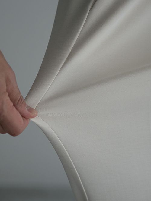 ストレッチの効いたストレスフリーな履き心地や、とろみのある滑らかな生地感も魅力的な一着。
