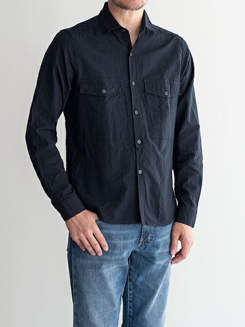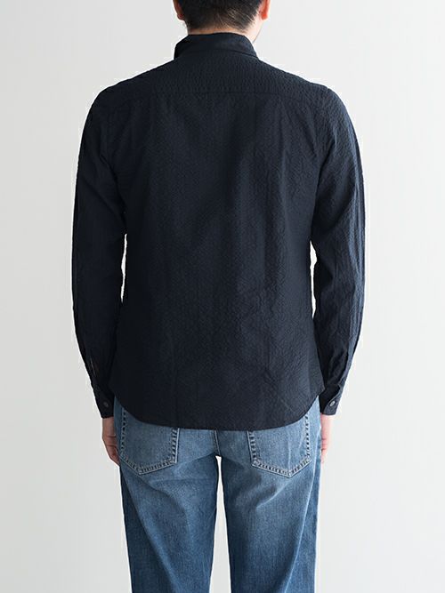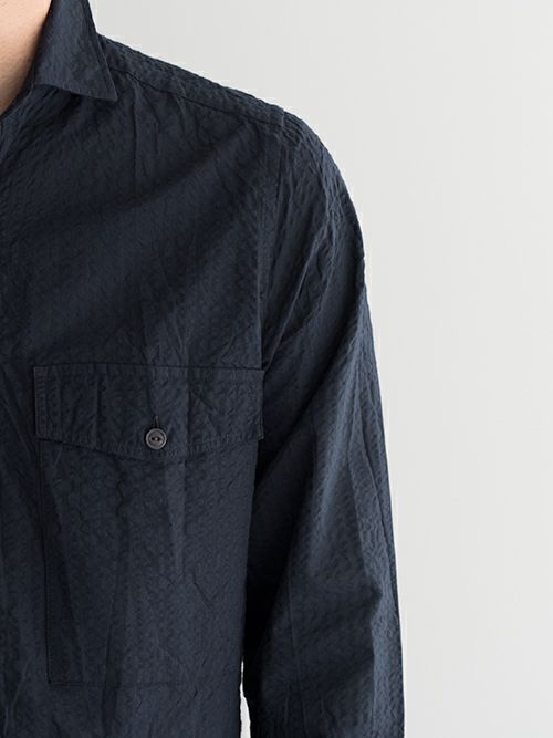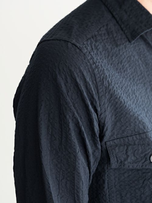 独特の立体感が魅力のシアサッカー素材を使用したロングスリーブシャツ。表面に凹凸のあるテクスチャーが特徴で、軽やかな着心地と通気性を兼ね備えた一着です。