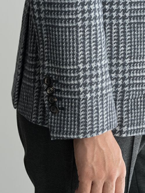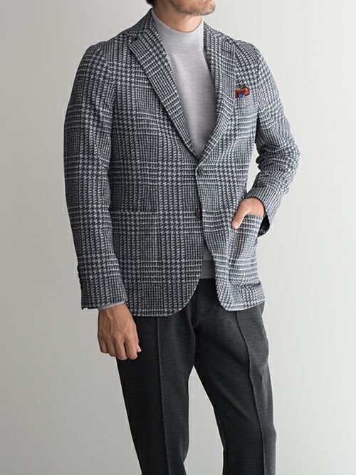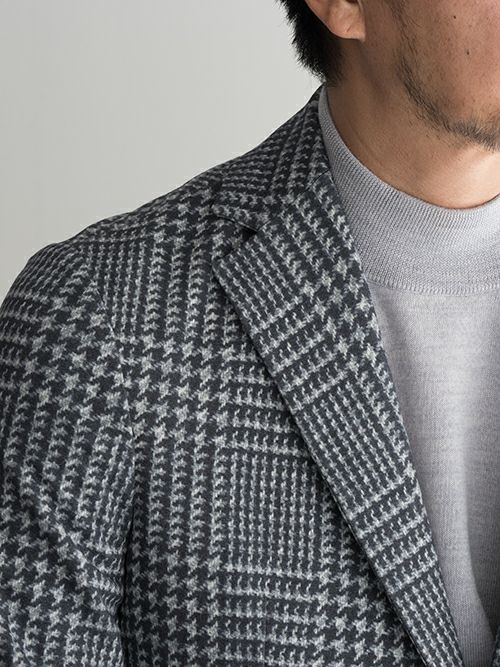 カットソーやニットの上に気軽に羽織れるグレンチェック柄ジャケット。もちろんタイドアップも可能な、オンオフ活躍する万能アイテムです。