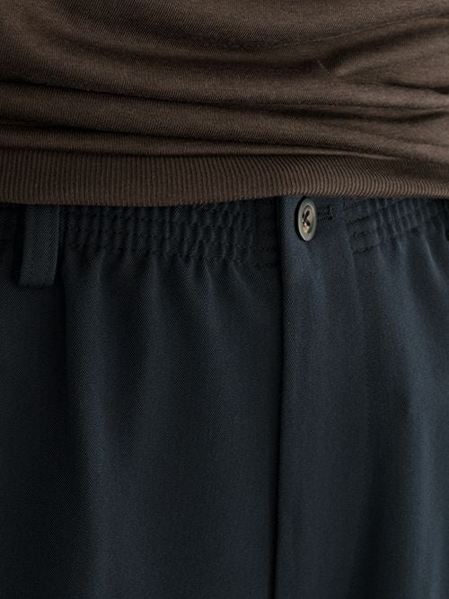 ウエストがシャーリング仕様のイージーパンツ。細過ぎず、太過ぎずの絶妙なシルエットは、程よいリラックス感を演出してくれます。