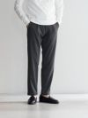 ストレッチのきいたリラックスフィットのワンタックパンツ。履き心地の良さは言うまでもありませんが、上質な生地感と綺麗なテーパードシルエットにより、大人の上品さを損ないません。