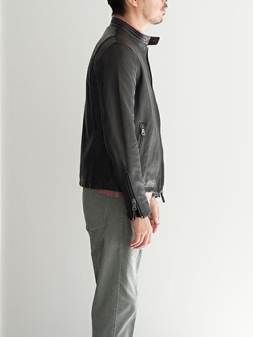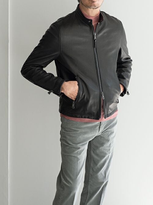 トスカーナの伝統技術の詰まった、上質なラムレザーを使用したシングルライダース。スタイリッシュなシルエットで、大人のレザージャケットとして申し分のない一着です。