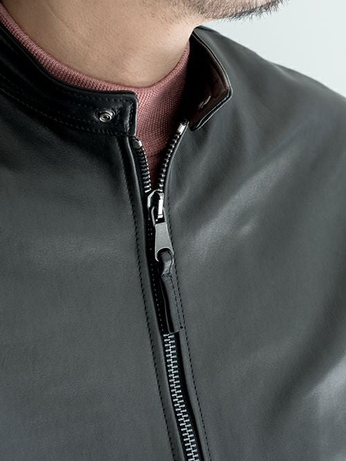 カットソーやニットの上にサラッと羽織るだけで、色気のある大人の雰囲気を纏う事ができます。無骨過ぎない上品なレザースタイルをお楽しみください。