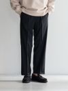 テーパードは緩やかに効かせてはいますが、どちらかというとストンと落ちたストレートに近いシルエット。こなれた雰囲気が洒落心をくすぐる一着です。
