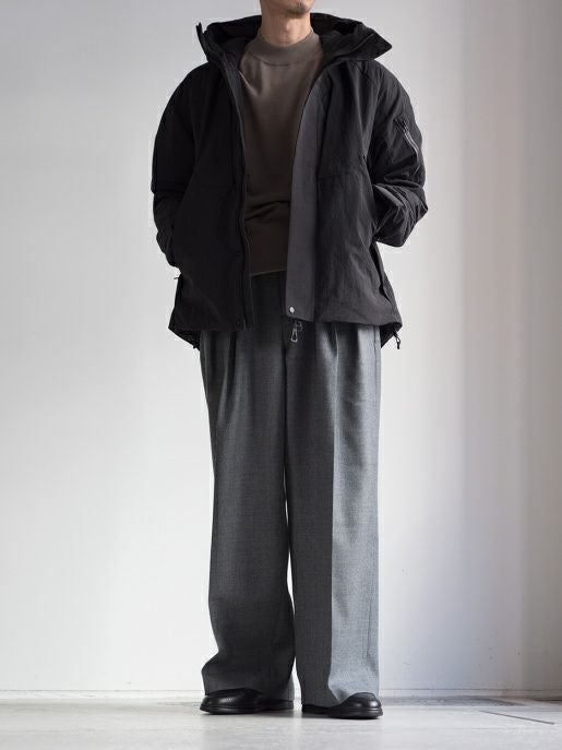 フードはスタンドカラーと一体型になっており、顔まわりをすっきり見せつつ冷気の侵入を防ぐデザイン。見た目以上に軽く、デイリーからアクティブシーンまで幅広く対応できる一着です。
