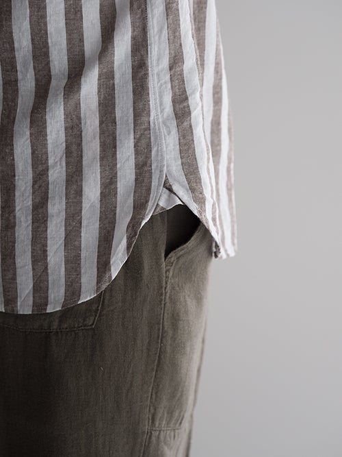 上質なリネン×コットン混生地は高級感があり、リゾートスタイルでも仄かな大人の色気を感じさせてくれます。