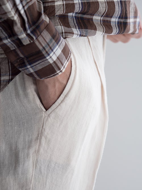 上品なシルエットが魅力のリネンパンツ