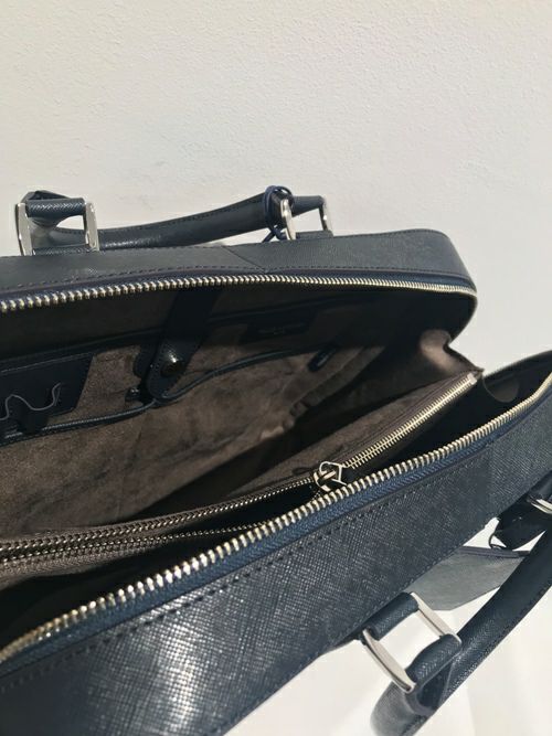 時代の流れを意識した、コンパクトなサイズ感でスマートな印象に。内側にはポケットやペンさしなどの収納もしやすい仕様。プリズムとよばれる牛革に水シボ柄の型押しを施した、傷が目立ちにくいレザーを使用しており、ラグジュアリーと機能性が融合したバックです。
