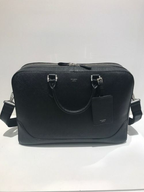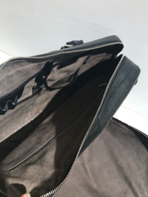 出張使いにも人気な2室型です。2室にわかれたメイン収納のうち、全部開く仕様の前室にはシャツなどの着替えを、後室にはPCや書類等をいれ整理整頓もしやすい仕様。プリズムとよばれる牛革に水シボ柄の型押しを施した、傷が目立ちにくいレザーを使用しており、ラグジュアリーと機能性が融合したバッグです。