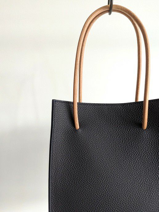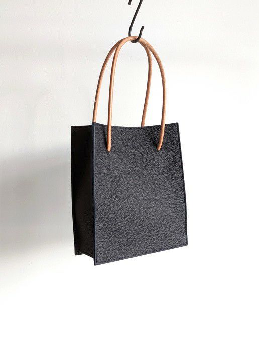 「お店のショッパーを革で作ったら」というコンセプトを実現したミニバッグ。表と裏に同様のシュランケンレザーを使用しています。