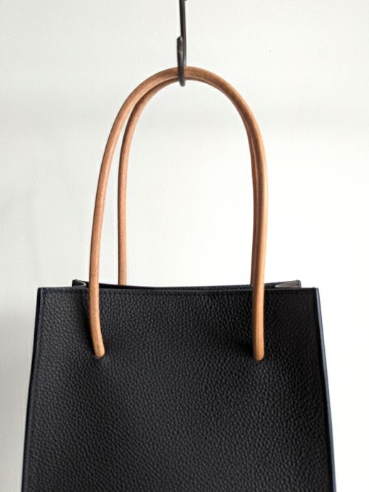 内側の上部に配したマグネットを閉じる事で、中の荷物が見えにくくなっており配慮も抜群。また、ハンドル部分のレザーは使いこむ程に手に馴染み愛着が湧いてきます。