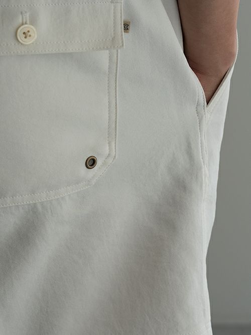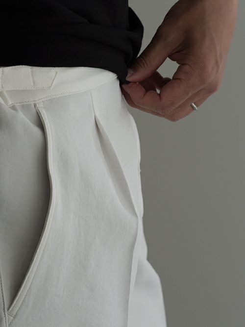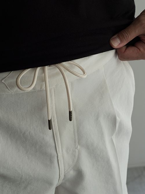 ウエストはドローコードを内側に配し、バックはシャーリング仕様。更に両サイドにはアジャスターが付いており、サイズの調整が可能です。