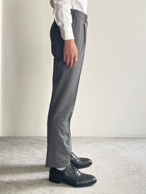 上質なウール生地のワンプリーツスラックスは、程よく腰回りにゆとりがあり、今のトレンドを上手く取り入れながらも、しっかりとテーパードをかけた綺麗なシルエット。ジェルマーノらしいナポリを象徴とするような仕上がりです。