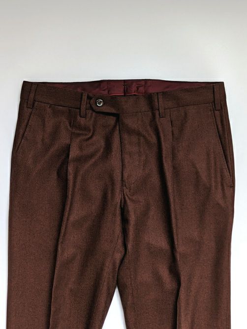 ワンプリーツで膝下から程よくテーパードさせた、イタリアブランドらしい綺麗なシルエットのコットンパンツ。ストレッチの効いた生地は履き心地が良く、シャツをインした際の腰回りもスマートに見える一着です。