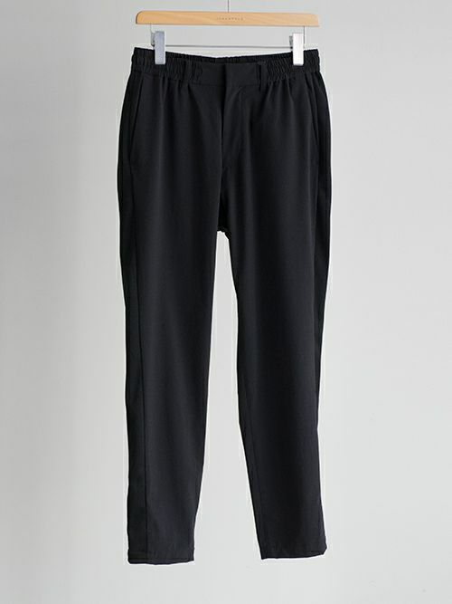 特殊な工程で縫製しており、着心地とシルエットに拘ったパンツ。東レのナイロンを使用した4wayストレッチ生地に、サイドのテレコ編みリブをプラスする事で、様々なシーンに対応できる可動域を実現しました。また、多少の雨であれば、水を玉で弾くほどの撥水機能も備えています。