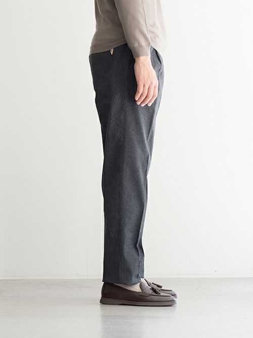適度に厚みのあるコットン生地で秋冬シーズンに適したテーパードパンツ。