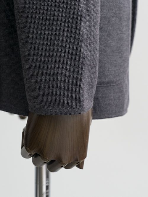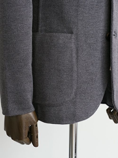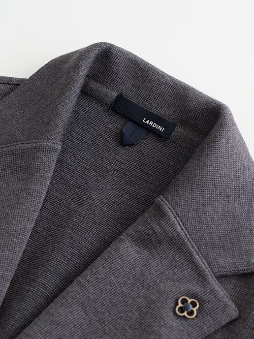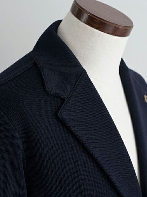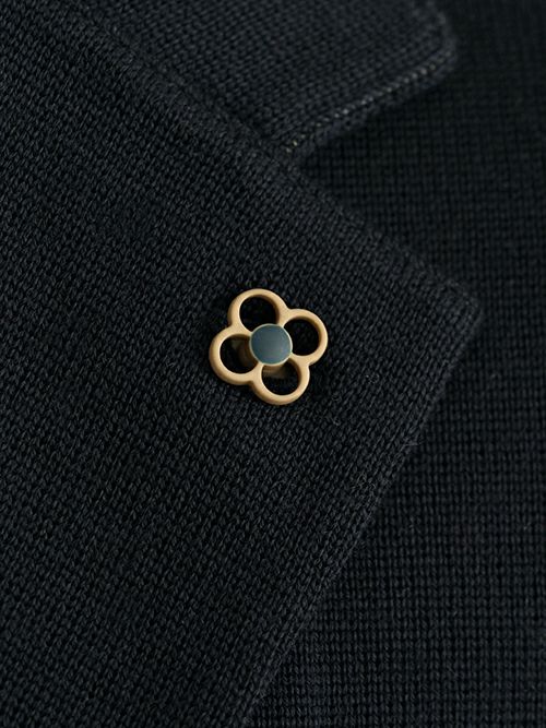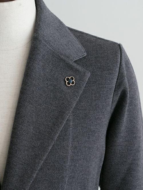 ノッチドラペルにフロントのパッチポケット、そしてサイドベンツのカジュアル且つシンプルなディテールが、生地の上質さと仕立ての良さを際立たせており、ブランドアイコンでもあるブートニエールがその名の通り花を添えます。