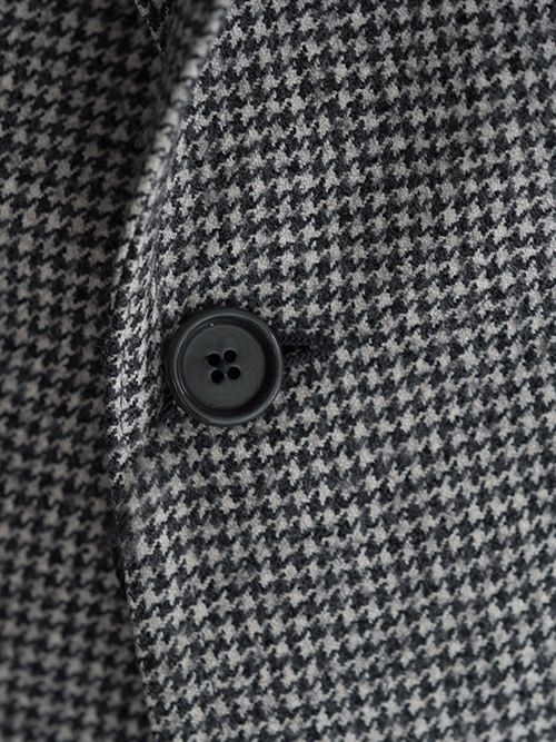 コンパクトな肩幅や高く登った登り。メリハリの効いたシルエットや丸みのあるポケット。ダブルステッチやマニカカミーチャなど、様々な拘りのディテールが目を惹く至極のハウンドトゥース柄ジャケット。