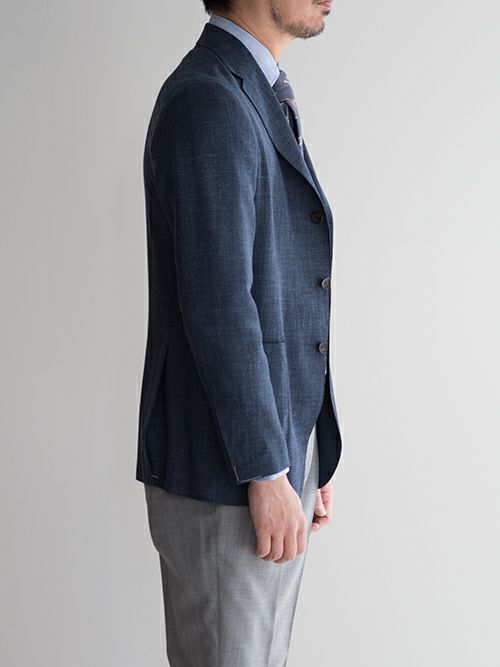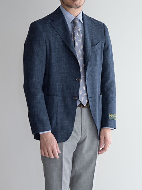 イタリア生地メーカー、Loro Pianaのウール、シルク、リネン三混生地を使用したジャケット。