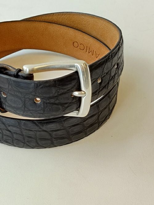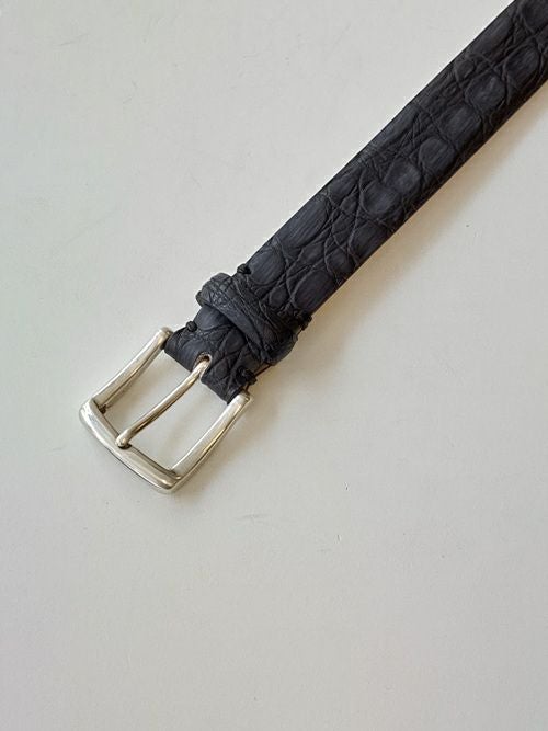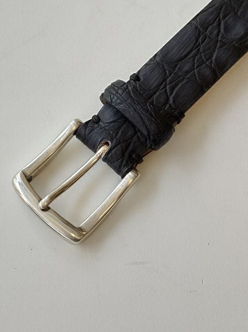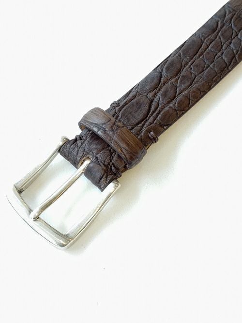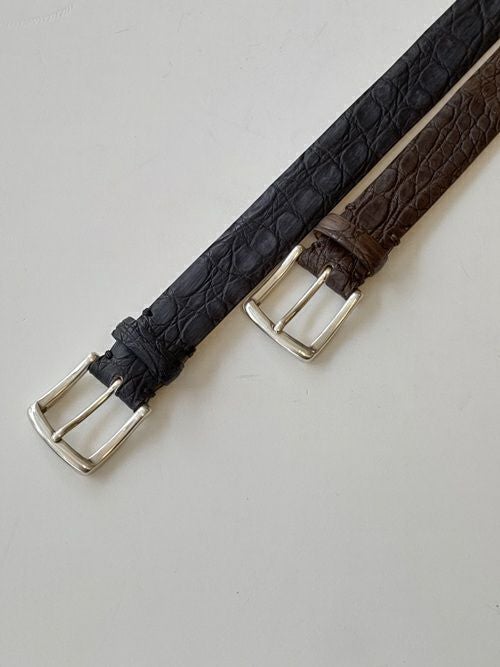 アンドレアダミコの代名詞と言えるレザーベルト。こちらはその中でも、クロコダイルレザーを使用した高級感ある仕上がりとなっています。バックルをミニマルなデザインにする事で、革の存在感が引き立ち、スタイリングの幅もカジュアルからドレススタイルまでお使いいただけます。