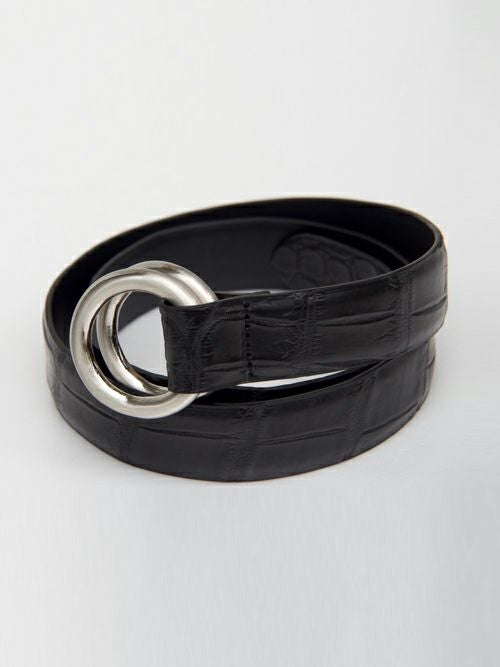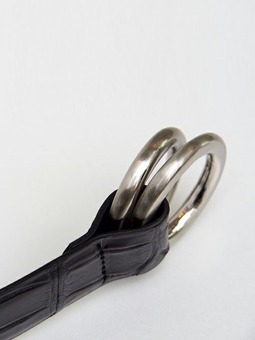 マットな仕上げのナイルクロコを使用した、ダブルのリングベルト。