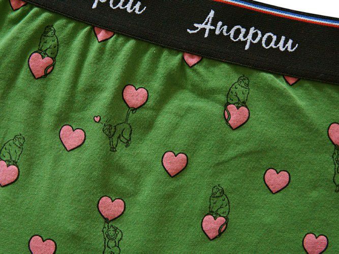 ハートと戯れる、おさる達がなんとも愛くるしい柄は、穿くだけで少し優しい気持ちになれます。