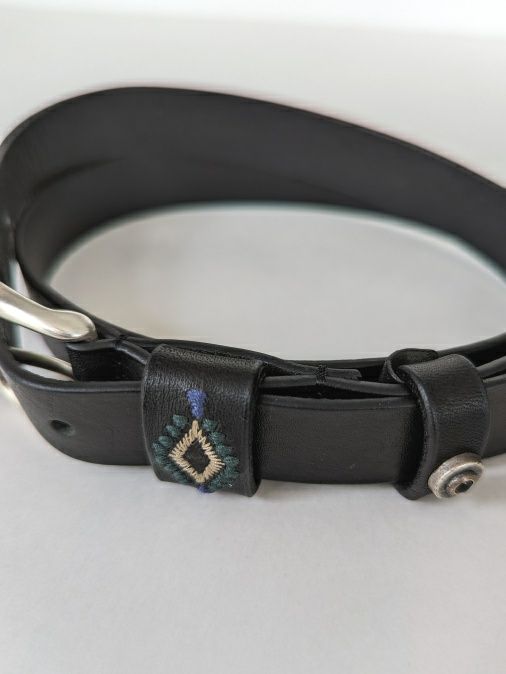 アンドレアダミコの代名詞と言えるレザーベルト。少しナローなベルト幅に、ネイティブモチーフと程よく厚みのあるバックルが、絶妙にバランスが取れており洒落ています。