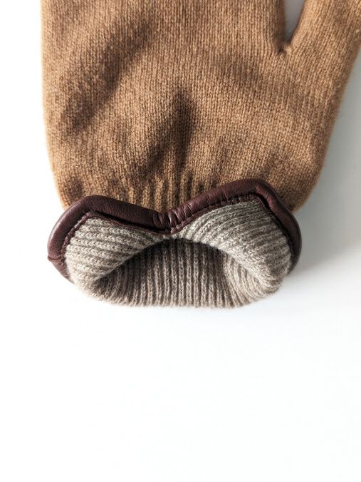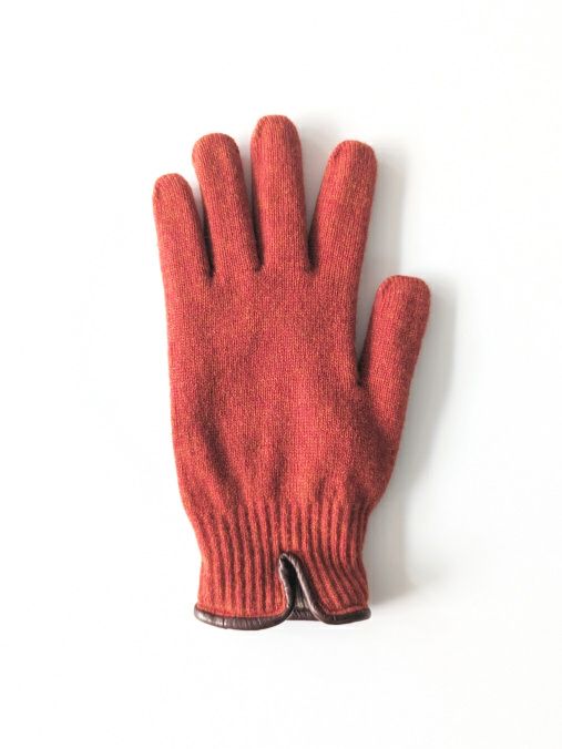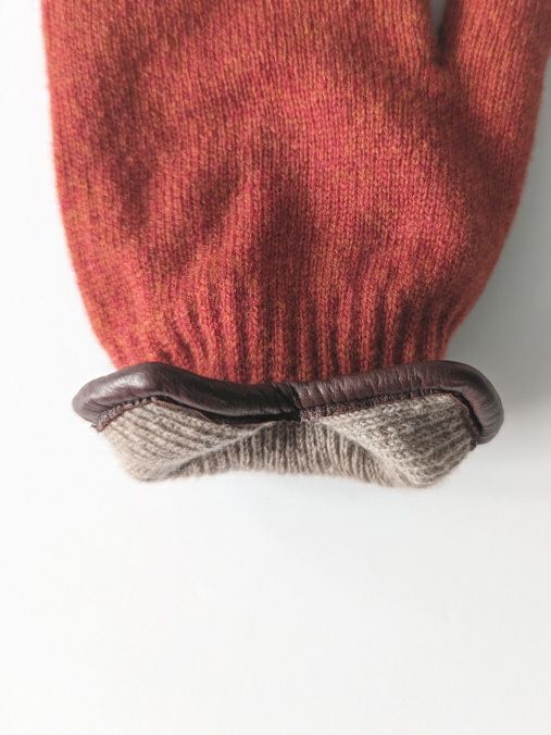 裾のパイピングには、KURODAらしいイタリア ポルトラーノ社のイタリアンラムレザーを施した、細部まで拘ったグローブです。