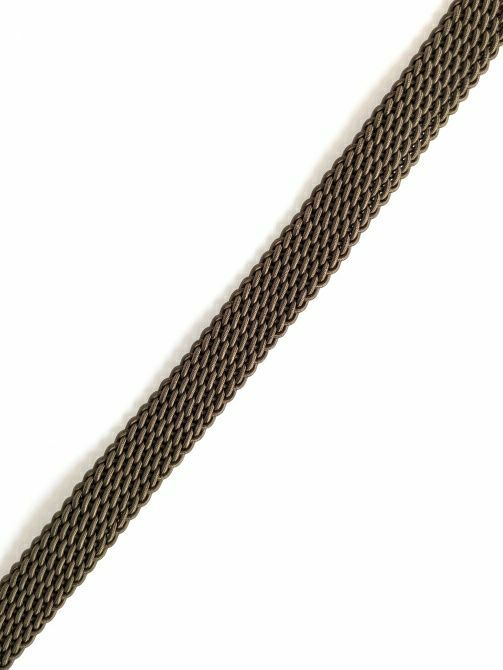 レーヨン混のラバーを丁寧に編みこんだメッシュベルト。バックルにはレザーを使用する事で高級感のある仕上がりです。