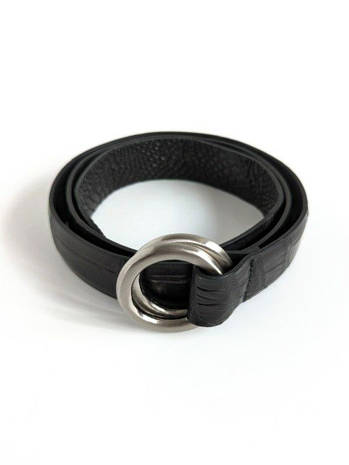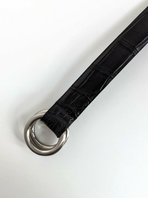 マットな仕上げのナイルクロコを使用した、ダブルのリングベルト。