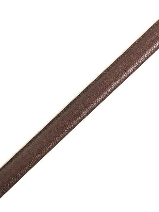 上質なシボ革の表情や、小ぶりで上品なバックルデザインが魅力的なベルト。