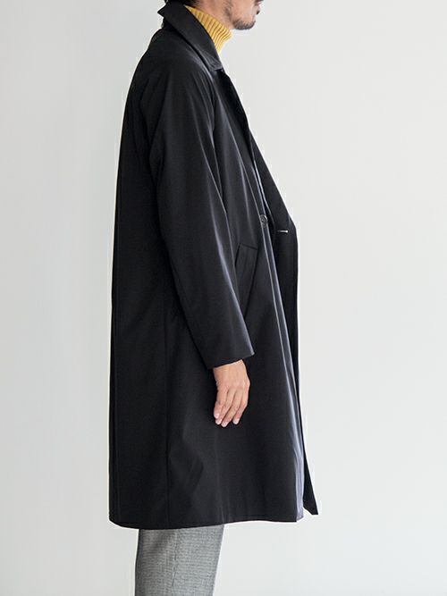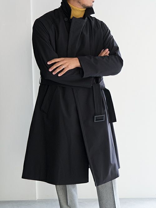 イタリアブランド Hevo(イーヴォ)より、ストレッチナイロンを使用した、ダブルフロントのベルテットコート。