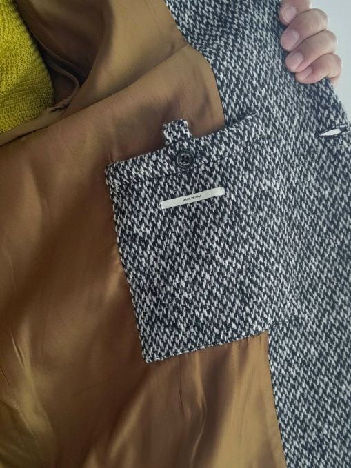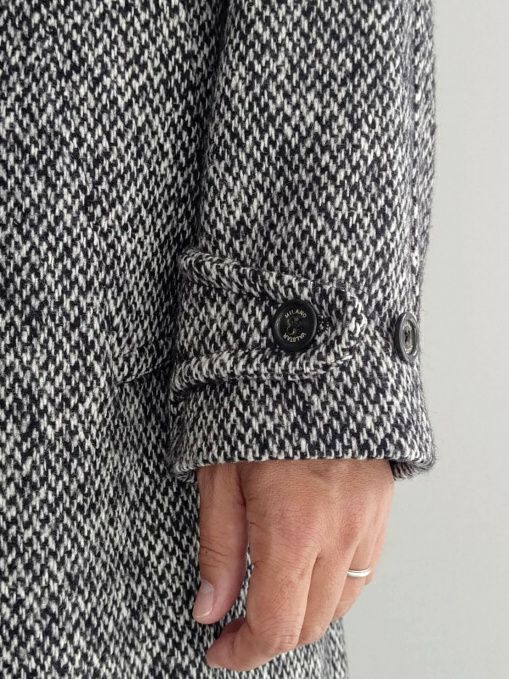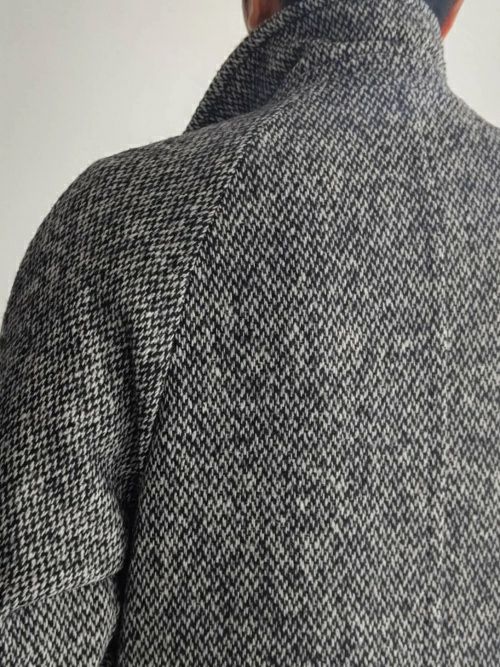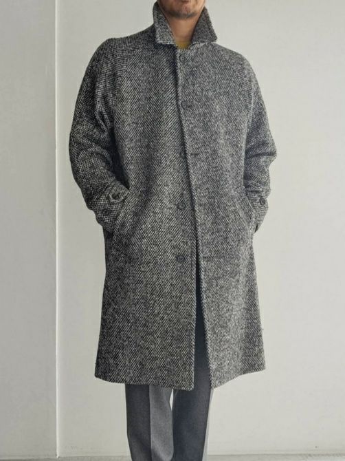 ラグランスリーブで身幅にもゆとりを持たせているので、落ち感のあるシルエットをお楽しみいただけます。裏地をつけた上質なウール生地は保温性が高く、寒い冬には重宝するアイテムです。インナーには薄手のセーターは勿論、厚手のセーターとのコーディネートもおススメです。