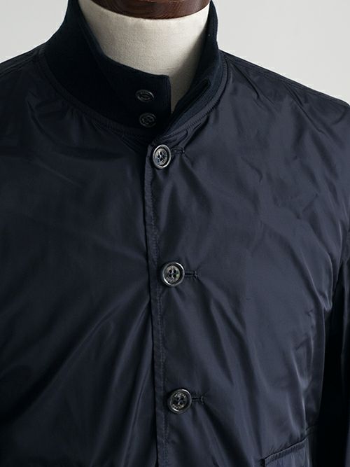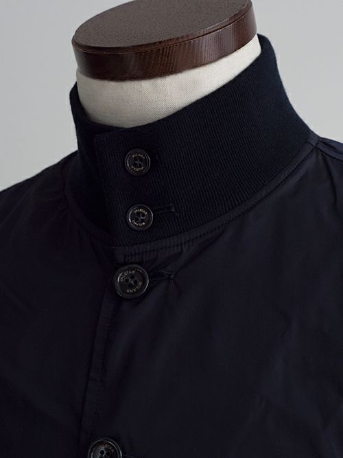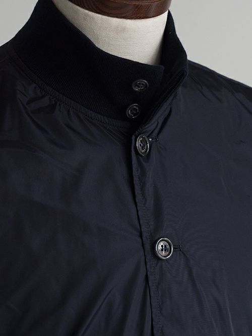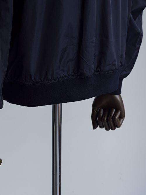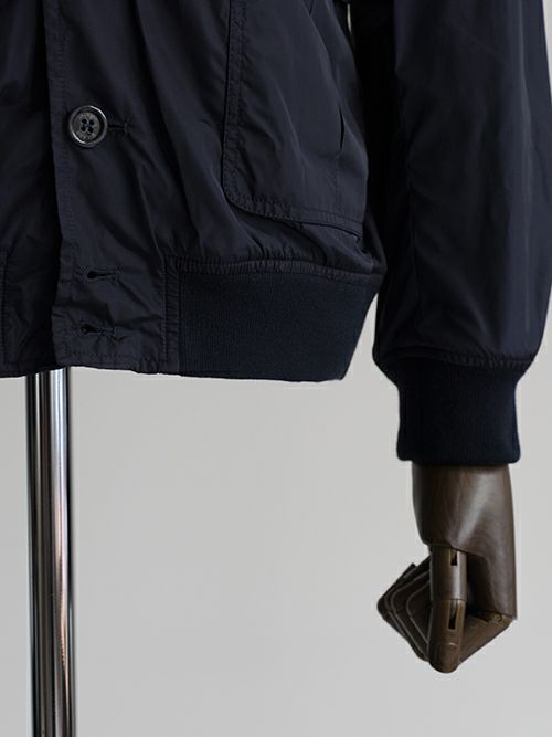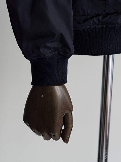 フロントの大きなポケットは、フラップを開けての使用だけでなくサイドからもハンドインできる作りになっており、利便性にも拘りが見えます。ショート丈のブルゾンはコーディネートを作る際の汎用性も高く、季節の変わり目にマストな一着。