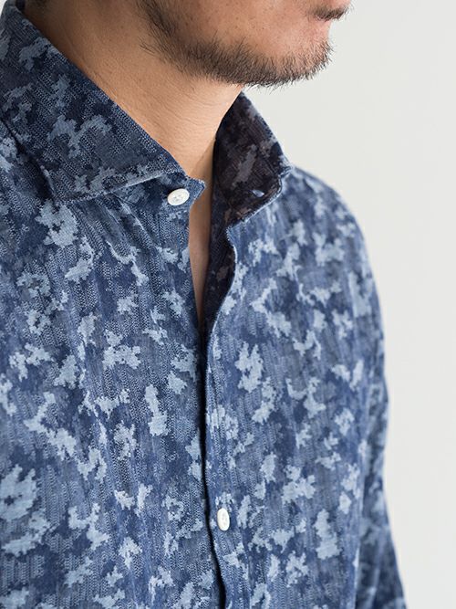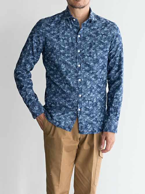 アルティジャナーレ ボタニカル柄カジュアルシャツ AGCS-8 BLUE